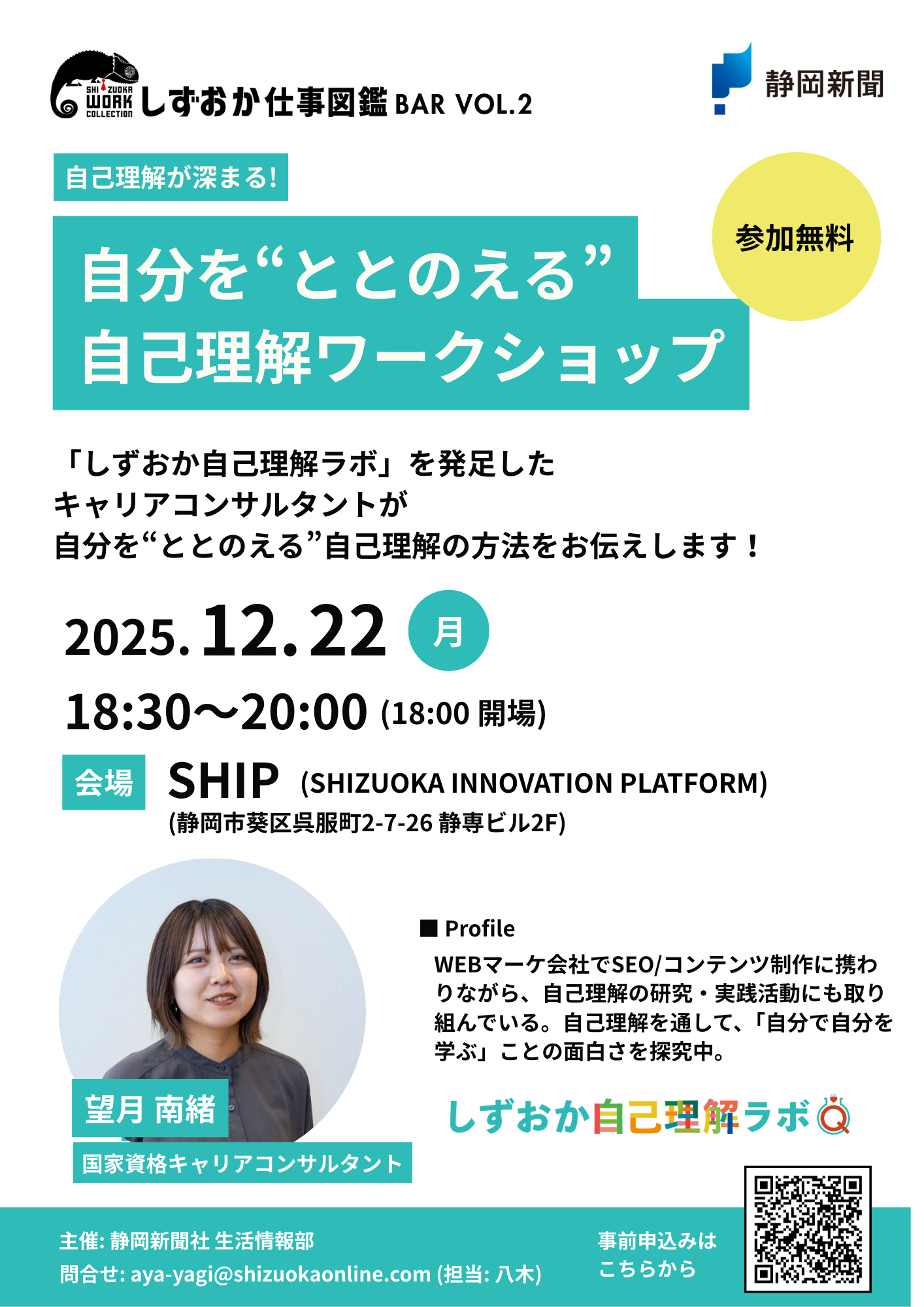 しずおか仕事図鑑BAR VOL.2 自己理解が深まる! 自分を”ととのえる” 自己理解ワークショップ