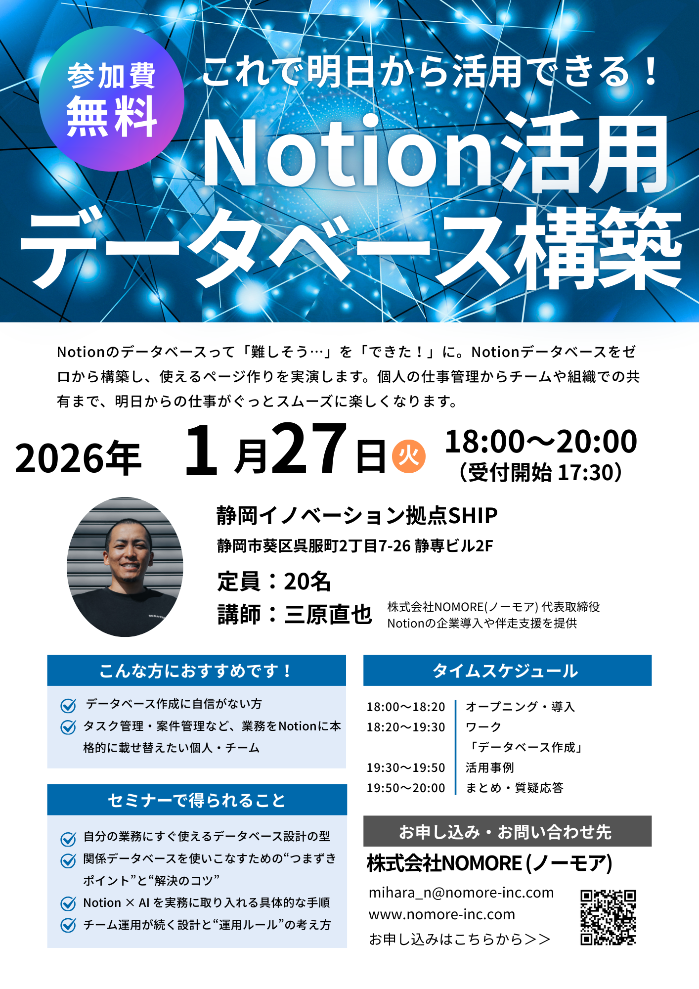 本イベントの申込受付・申込情報の管理については主催者(株式会社NOMORE 代表取締役 三原直也)