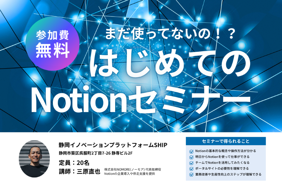 日時:2025年11月18日(火曜)18:30-20:00 会場:SHIP 定員:20名 参加費:無料 <内容> 世界で1億人が使っているオールインワンソフト『Notion』、ま…