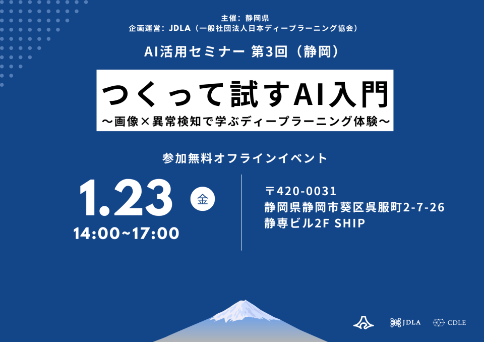 AI活用セミナー 第3回(静岡) つくって試すAI入門 〜画像×異常検知で学ぶディープラーニング体験〜