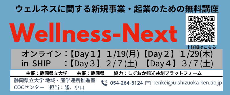 初開催!ウェルネスに関する新規事業・起業のための講座 Wellness‐Next(主催:静岡県立大学、共催:静岡県)