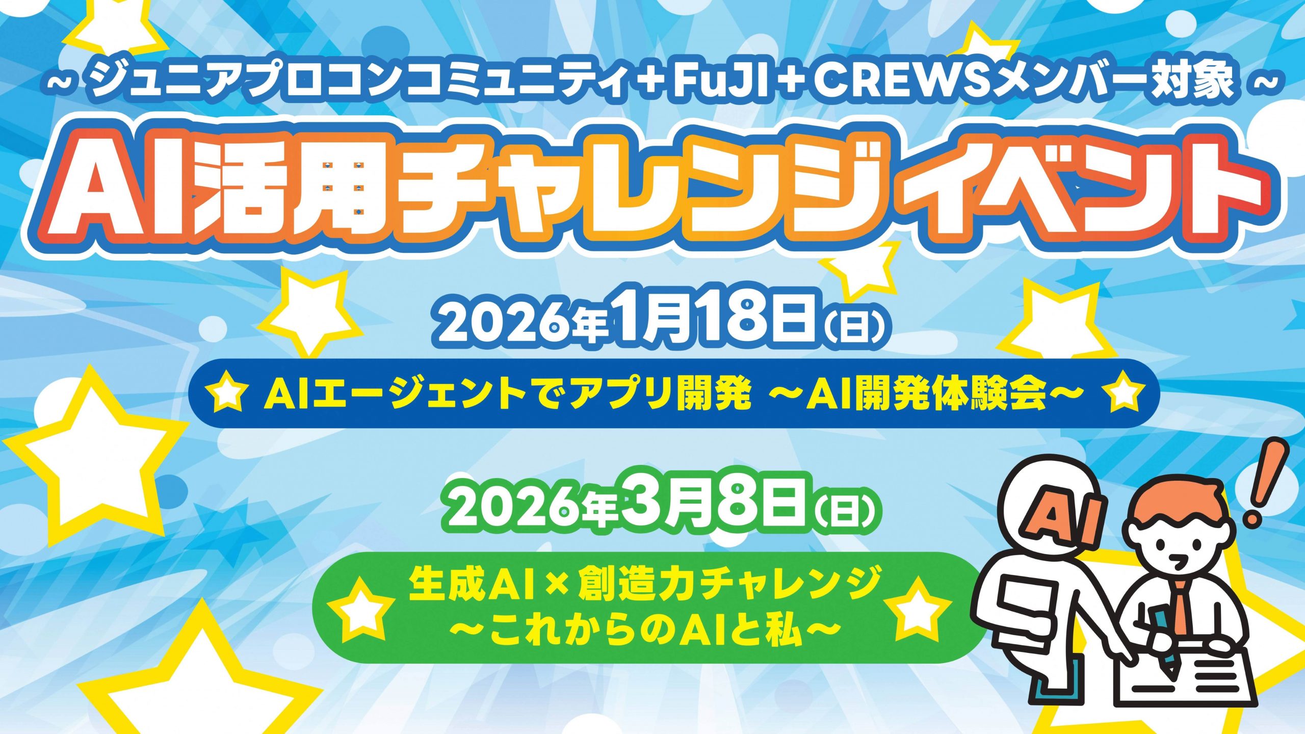 生成AIをビジネスにどうやって活用できるんだろう?AI開発ってどうやってやるんだろう? そんな疑問をお持ちの方向けにイベントを開催します! FuJI・CREWS・ジュニアプロコンコミュニテ…